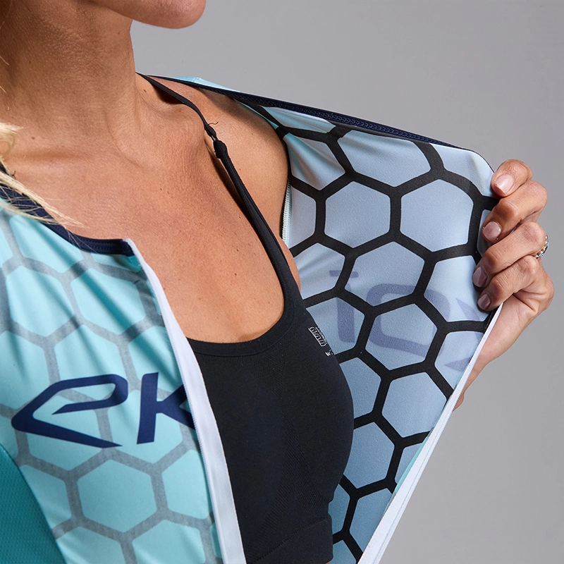 Pur produit racing made in Italie développé pour les triathlètes professionnelles comme Julie Iemmolo (6ème du CHAMPIONNAT d’EUROPE IRONMAN 2024), cette combinaison intègre la technologie graphène dont l’atout majeur est de dissiper la chaleur corporelle.